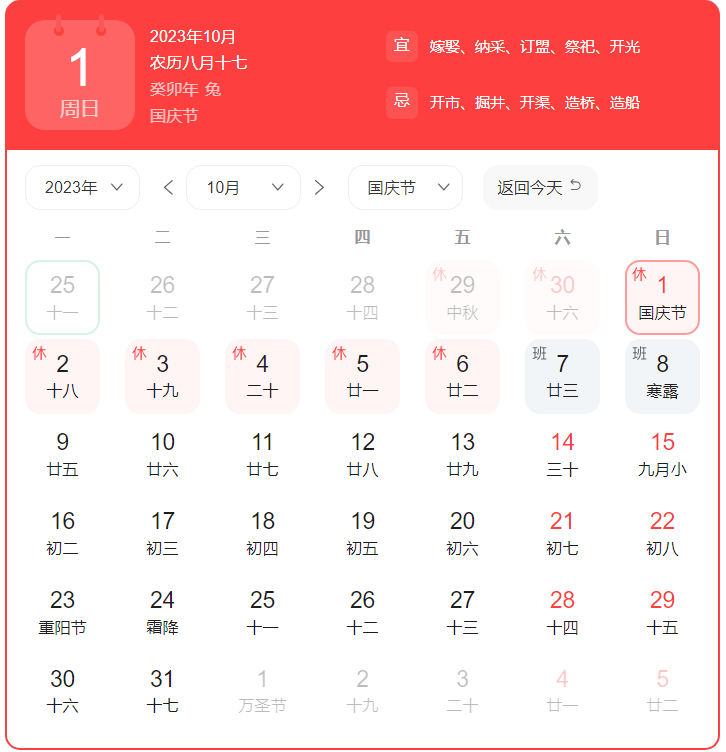 2023年09月29日~2023年10月06日 共計(jì)8天